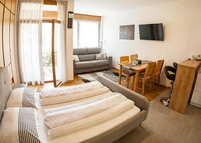 Az 42 négyzetméteres Flow Apartments Astoria apartmanban van piknikezőhely, napozó dekk és aquapark. A teljesen felszerelt konyhát tartalmazó szálláshely mindössze 1,7 km-re fekszik a Trauttmansdorff kastély kertje területétől.
